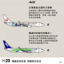 55年後的今天,飛機變大了,從四個細長的引擎變成兩具大顆的蛋殼。大阪又再次迎來舉辦萬國博覽會的資格,當年在民航機上也是下了不少努力做宣傳,1970和2025的彩繪機一次看💙❤️